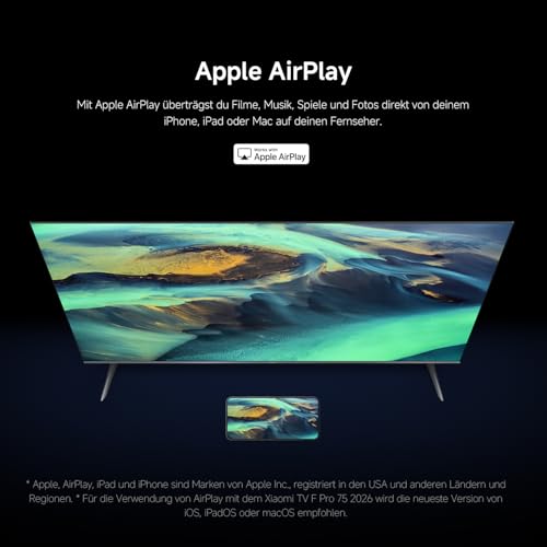 Dank Apple AirPlay übertragen Sie Inhalte kabellos von iPhone, iPad oder Mac direkt auf den Fernseher – perfekt für Fotos, Videos oder Bildschirmspiegelung ohne zusätzliche Geräte.